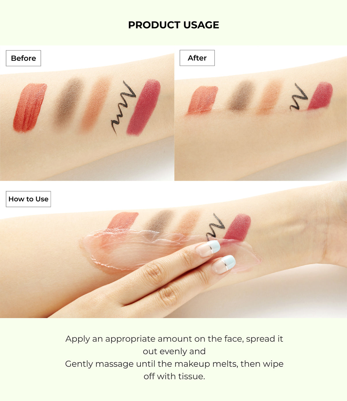 Gently massage with a moderate amount over face & tissue off. Follow with a cleansing foam wash.